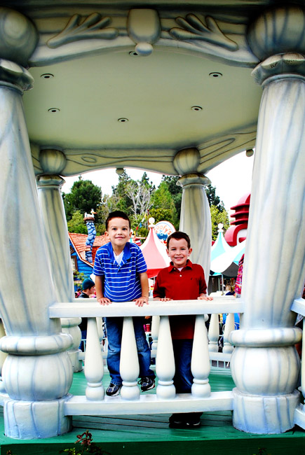 Here are the boys about to board Indiana Jones. Benjamin loved it. Jonathan was in tears when it was over. Maybe not the best ride for a five-year-old.